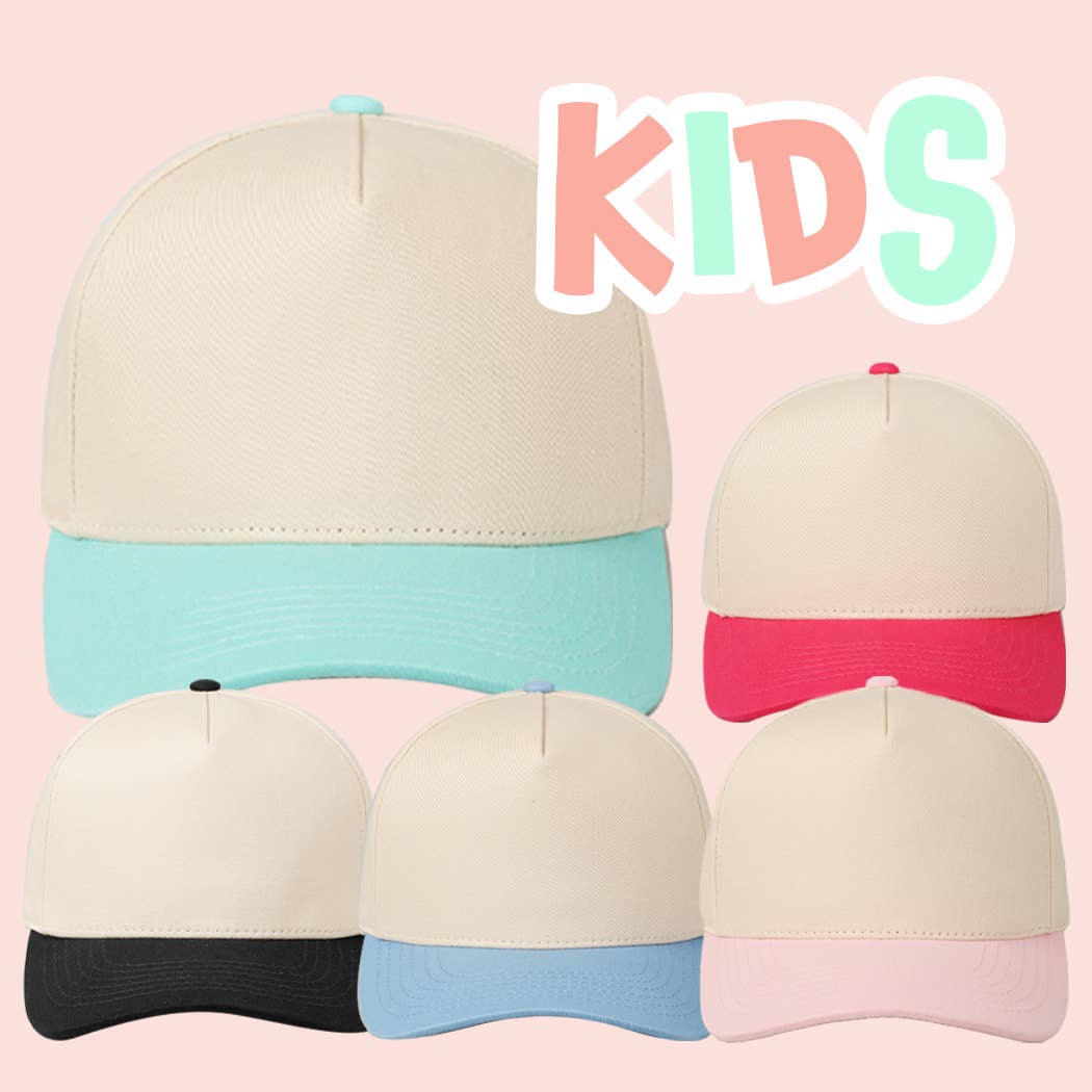 Kids Plain Two Tone Canvas Cotton Baseball Cap